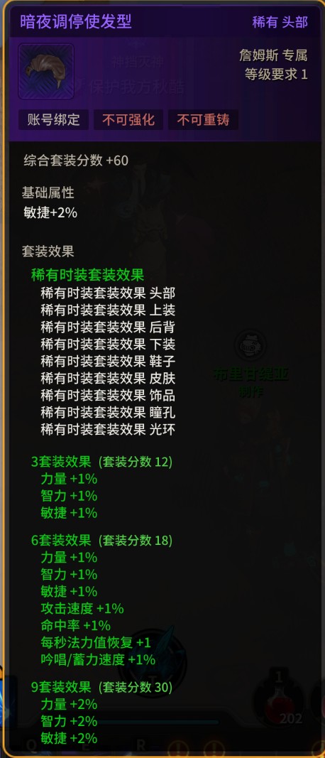 头部——T1敏捷、全属性强化 T2命中率 T3 CD