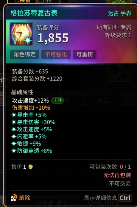每个装备自带随机数值的基础属性,其中武器为攻击力,首饰、头部、腰带、鞋四个部位为主属性,大家拿到这些部位的传说装备后一定优先把主属性洗满,至少也要洗到比较高的数值,普通薛定谔不值钱随便洗就行,后续换装备也可以直接继承很方便。