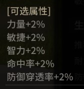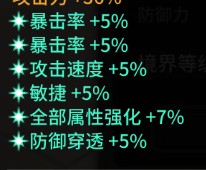 武器——T1攻击力、暴击率、爆伤 T2敏捷、防御穿透、全属性强化 T3稀有怪增伤
