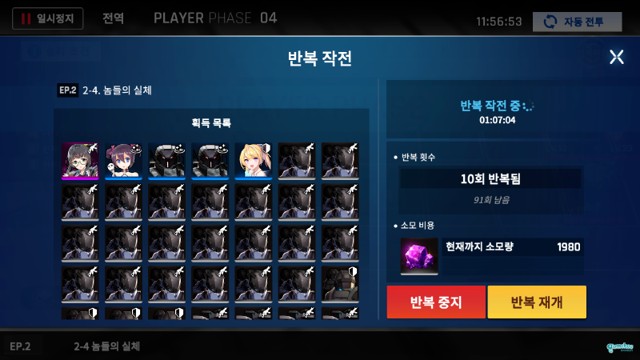 这个是N卡队伍 EP2 2-4刷SR加特林的消耗,30级就可以来刷了....EP2 4-5 刷财阀大小姐 只要40级就行 99消耗全程无压力
