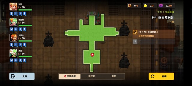 《坎特伯雷公主与骑士》第九章拉赫帝国9-4(普通)攻略1:注意事项进关卡让团长伊娃带队,三星偶像团长也可以2:9-4关卡小地图3:黄碎片位置获取方法(共计3个)(1)小公主对话