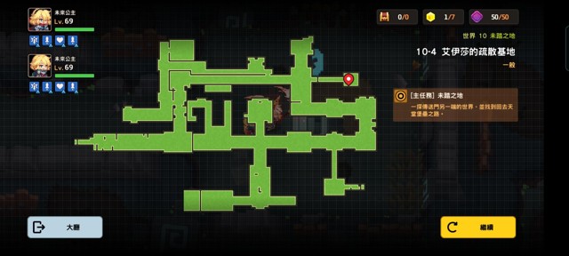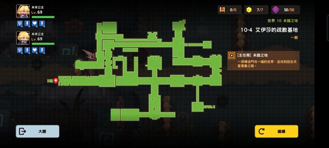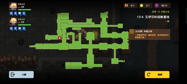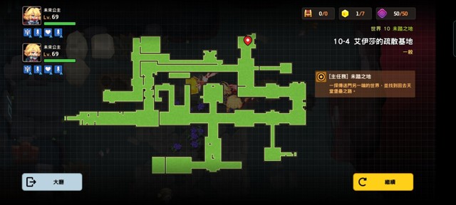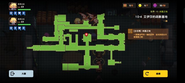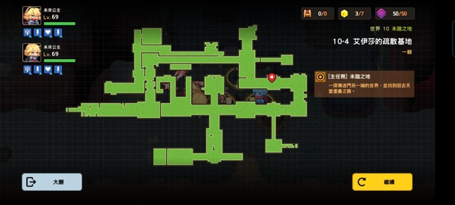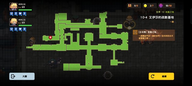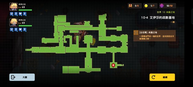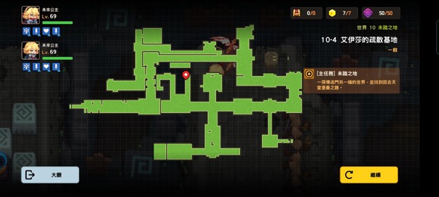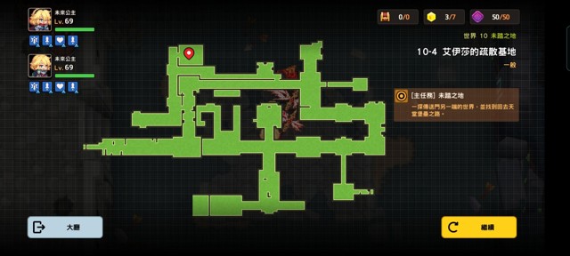 《坎特伯雷公主与骑士》第十章未踏之地10-4(普通)攻略1:10-4关卡小地图2:黄碎片位置获取方法(共计7个)(1)图示位置在吸血鬼的棺材前面站着不动,等待一会儿会有剧情,看