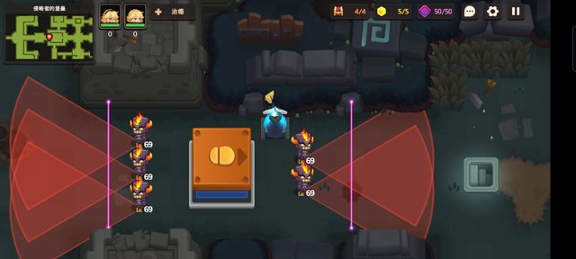 (3)先做主线拿到老鼠控制器(下面1号宝物),然后来到下图位置,操纵老鼠炸弹往左,踩踏板,然后把右边的石头炸掉