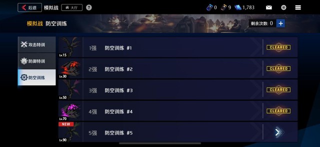 首先介绍一下,模拟战分为三个训练:攻击训练、防御训练和防空训练,分别产出经验书、技能书与适能核,其中各种适能核是最有用的,也就是说如何能尽快打过90级防空训练是当务之急。