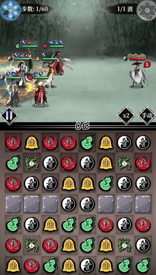 3、攻略建议:阵容选择优先选用水系双单体侠客和输出型奇侠(血滴子、恒山、逍遥等)。奇侠守墓人相对较脆,靠近藤蔓的输出棋子消除>其余位置的输出棋子消除>藤蔓位置的辅助消除>其余位置辅助消除,快杀更容易获取更高的回合数评分。