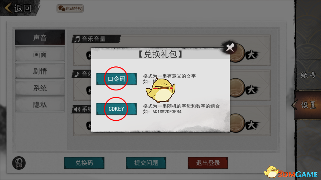 3、点击兑换码选择CDKEY输入兑换码领取奖励