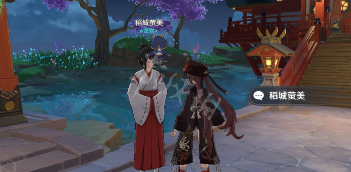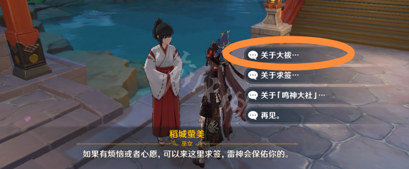 来到鸣神大社与稻城萤美对话(传送点一来就是)。