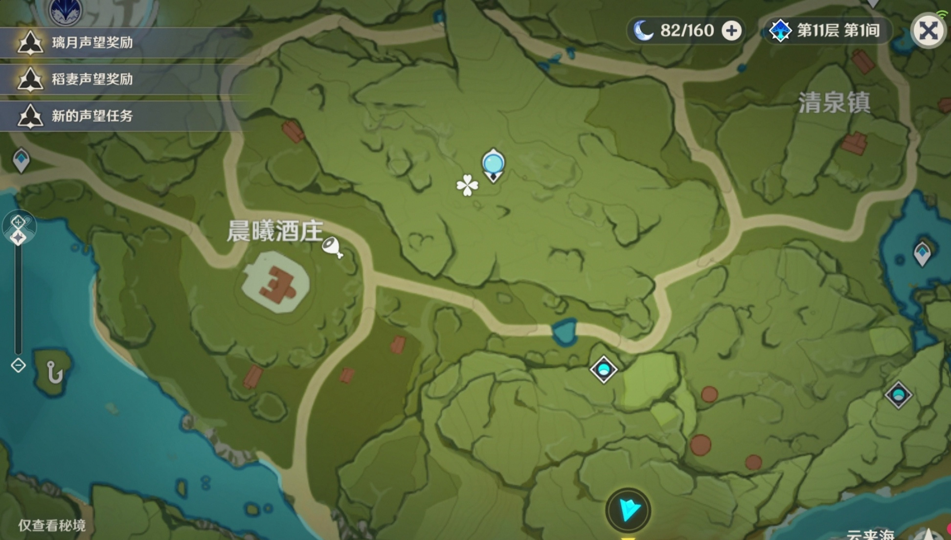 庆云顶神像,边上长清心(未来清心缺口大的话也可去奥藏山下面的岩柱顶上,有很多清心)。