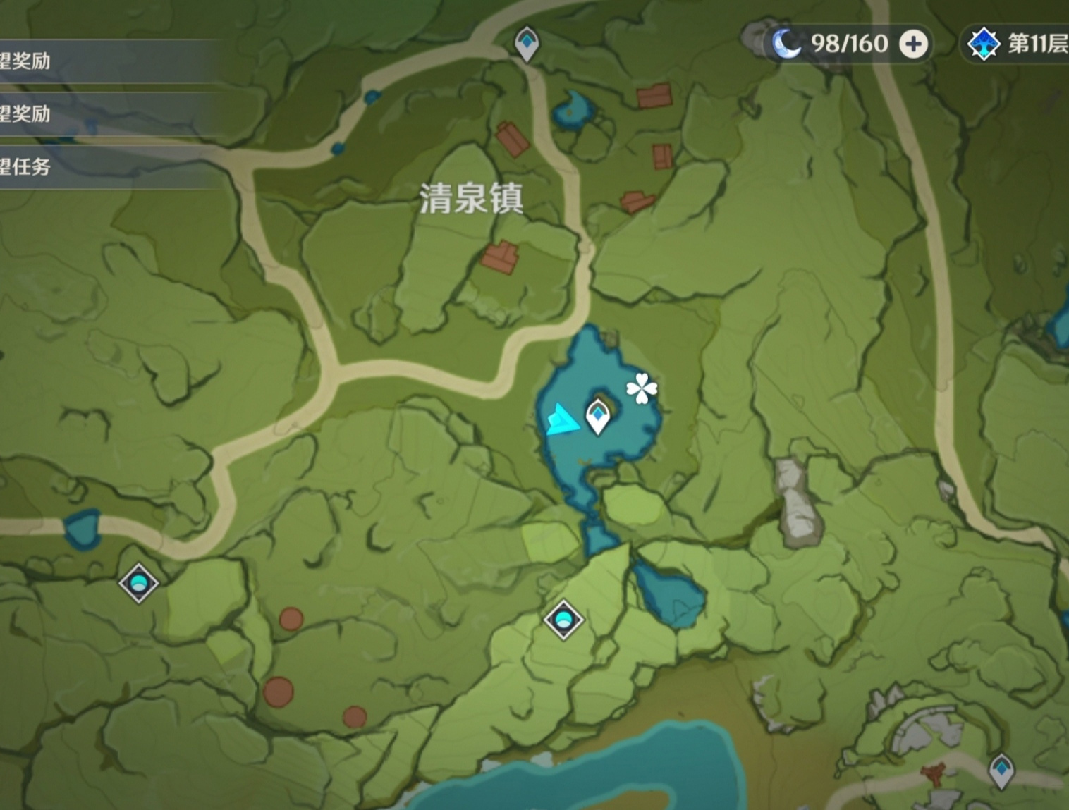 清泉镇湖中间传送点,周围很多嘟嘟莲,青蛙。
