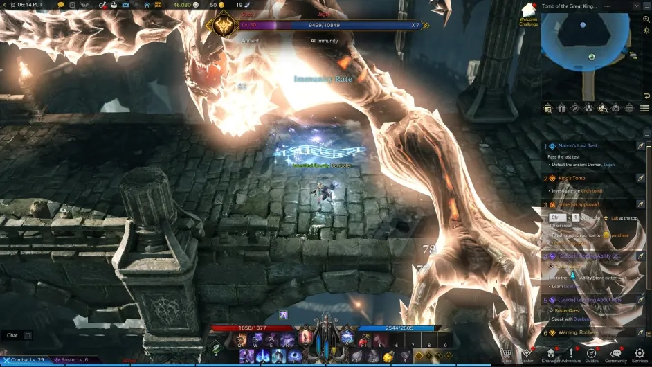 副本中通过从森林墓地到最终的国王目前,前期通过尸鬼阻挡玩家,中途通过大法师的解密玩法抵达真正的墓穴,随后是火龙的一段跑酷,基本上就是跑路。来到最终boss战,一共三个阶段,难度越来越强,基本还是走位来躲避技能。