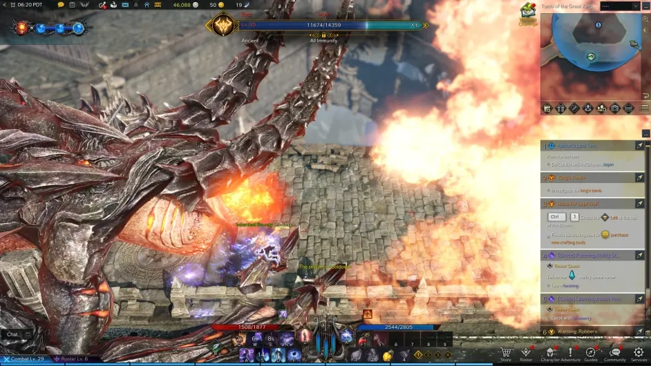 经过战斗后,击败了大法师,大法师说明国王墓穴被赤火怪占领。请你去击败赤火怪。