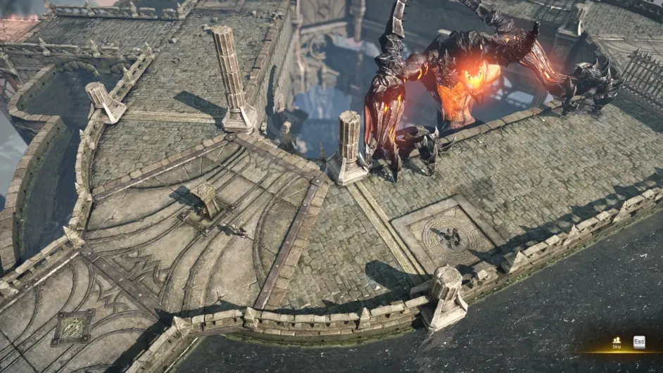 注意走位和保持血量,你成功击败了赤火怪,赤火怪从高高的天井坠落下去。