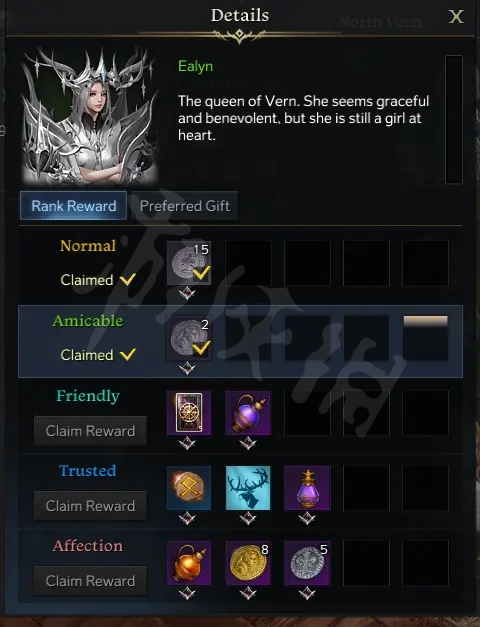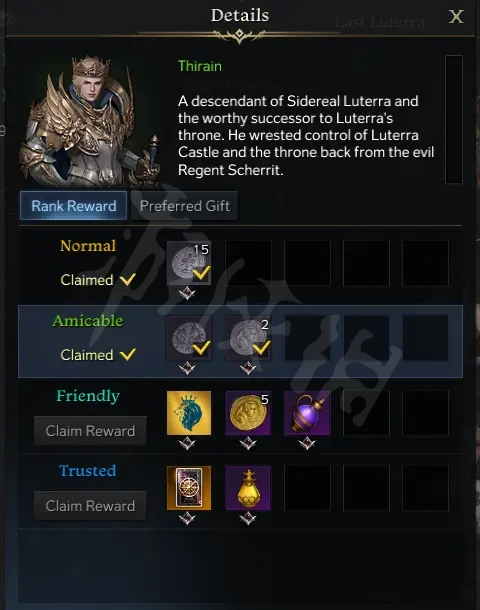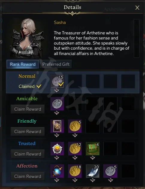 以下整理的这些npc,全部都会给你金币奖励,点击右上角放大镜就可以看到不同级别的奖励。当然做到某一个阶段的声望会给任务什么的,不要盲目送礼物冲。可以每天去唱唱歌做做表情。紫色礼物声望有高有低,有些可能是300有些320有些360,尽量送高的。下面开始名单