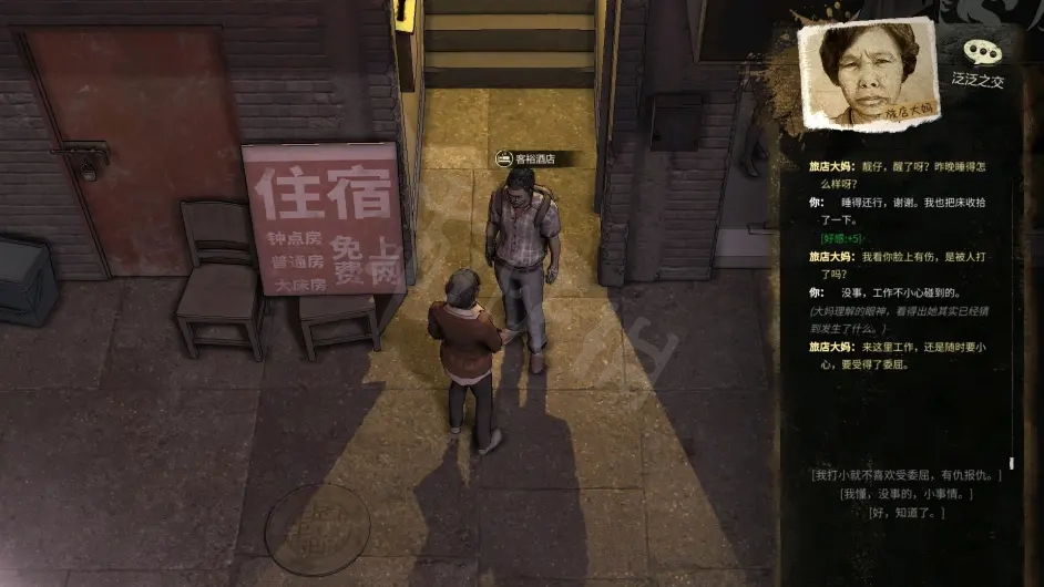 初步游玩体验:刚开局就欠了一万,每天必须还100,开局遇见的大妈非常好,可以免费住一晚,还挺关心我的。