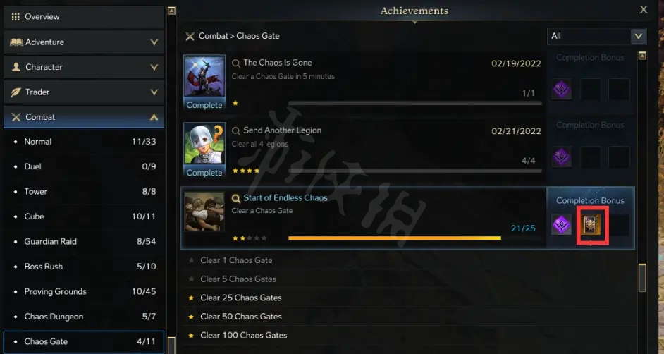 ②100次混沌之门成就。
