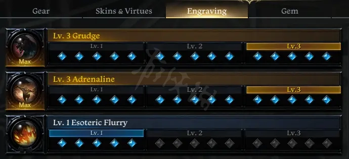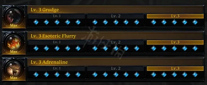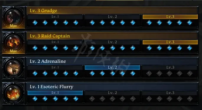 如果不喜欢怨恨(Grudge),可以直接满职业铭刻+肾上腺素(Adrenaline),甚至加一个重甲 Lv.1(Heavy Armor)