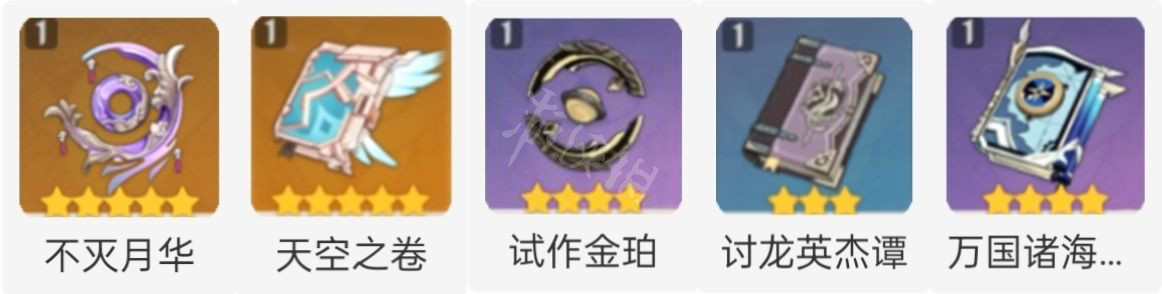 不灭月华:珊瑚宫心海专武,主词条为生命值,武器面板提供治疗加成,普通攻击造成的伤害增加以及施放元素爆发后的普通攻击命中敌人时恢复元素能量,通用性较低的武器,目前适合该武器的角色有珊瑚宫心海和芭芭拉。