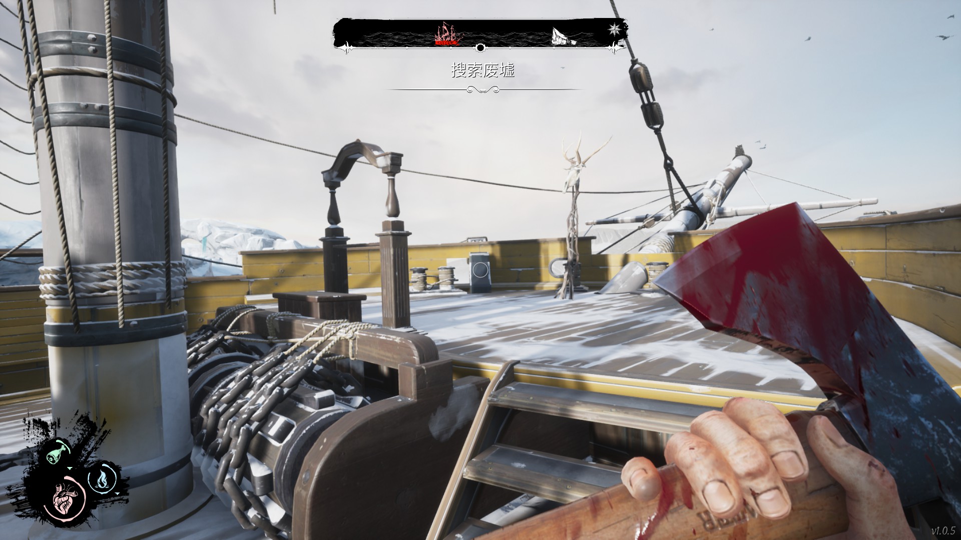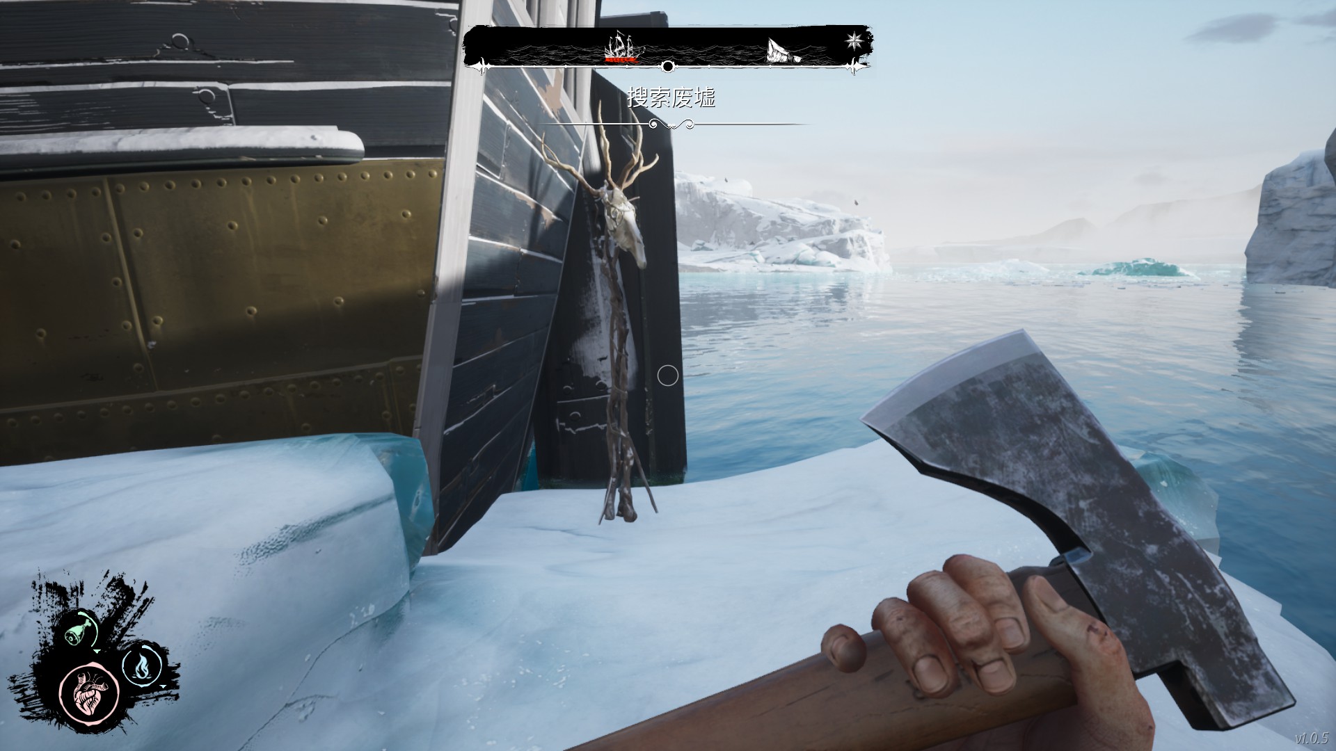 第二个图腾:在修补船体去沉船搜索废墟的船头下可以直接看到一个。