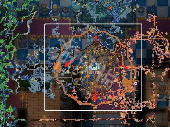 当我们打开地图,来到下图中的橙蓝色相交的区域,吞噬者戈尔姆会在地图上的橙色环形区域进行移动。