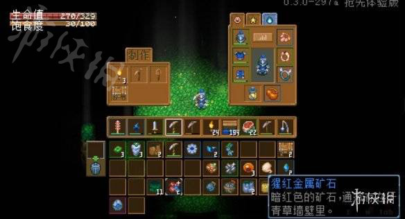 解锁最外层墙壁,再往前走,会遇到一种敲不了的墙壁,先沿着墙壁走。直到找到青草墙壁,就有猩红金属矿石了。