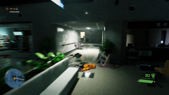 沿路一直前进来到医院,触摸板可以打开地图L3奔跑。