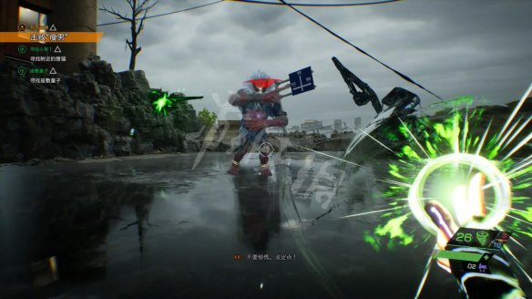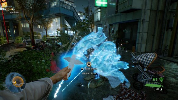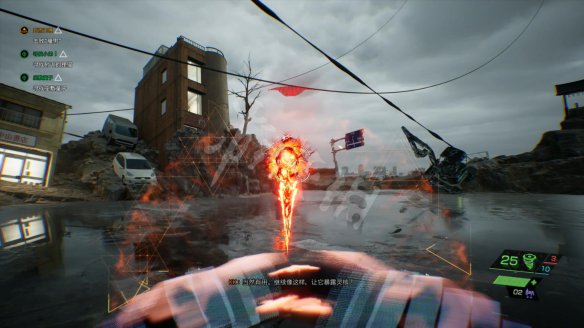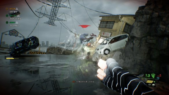 走出医院后跟随任务点前进,路旁的白雾是禁区,进入会导致体力流失。