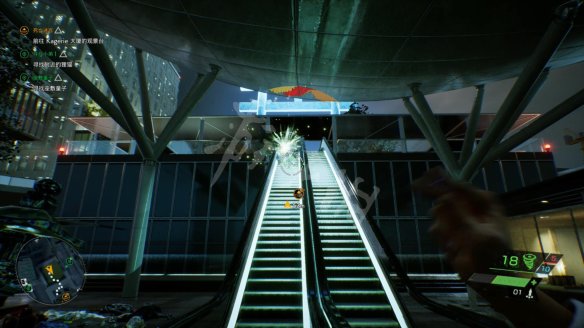 扶梯处上楼,路上会遇到JK杂兵蓄力可以打出灵核,攫灵吸收可以获得空灵补给。