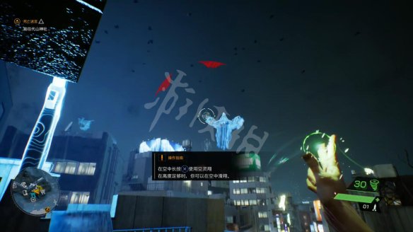 跟随任务点前进发现天狗,发动灵空跃跳到高处。