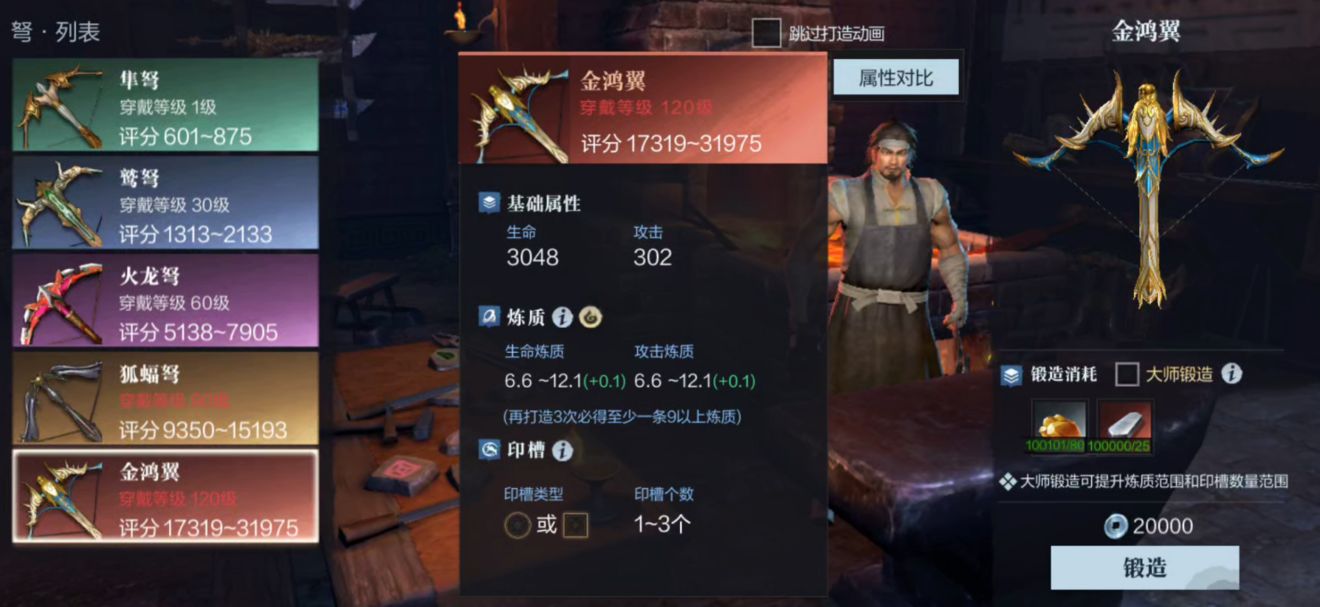 隼弩(穿戴等级LV.1)、鹫弩(穿戴等级LV.30)、火龙弩(穿戴等级LV.60)、狐蝠弩(穿戴等级LV.90)、金鸿弩(穿戴等级LV.120)