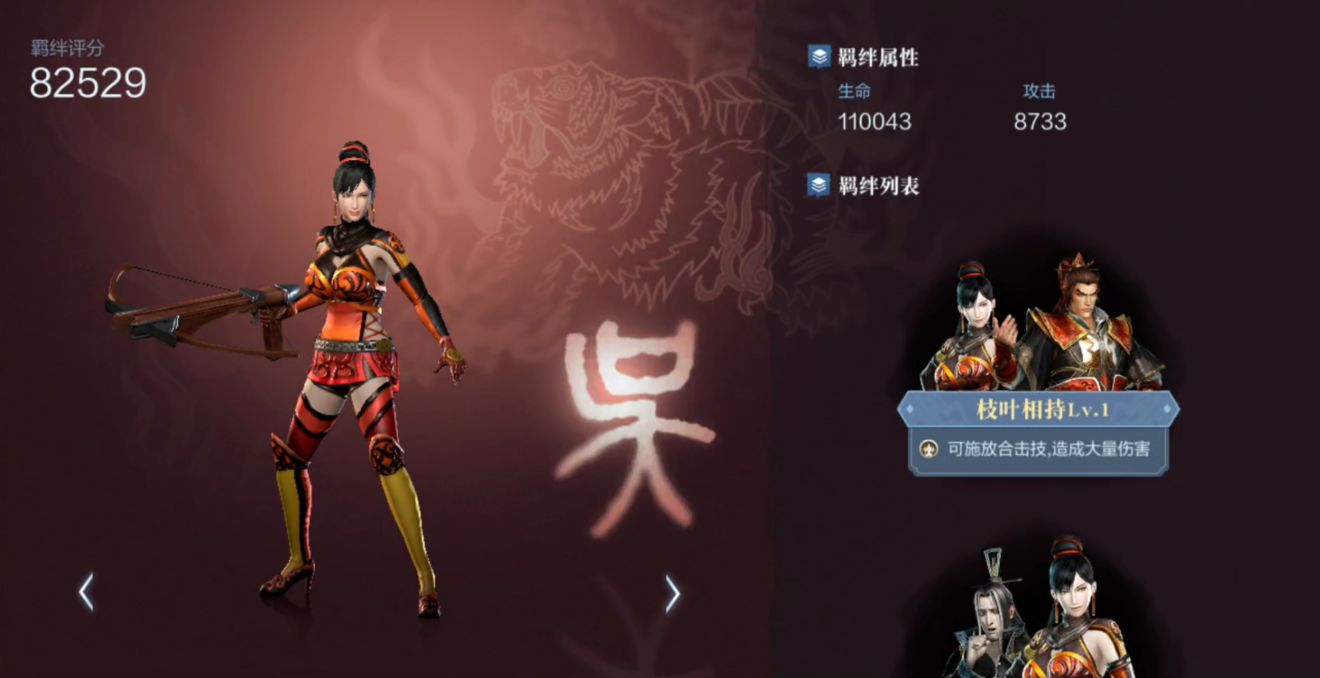 而【枝叶相持】则是和孙权的专属羁绊,能够召唤孙权登场,同心协力,释放强大的羁绊合击技,打出高额的范围伤害,十分强力!