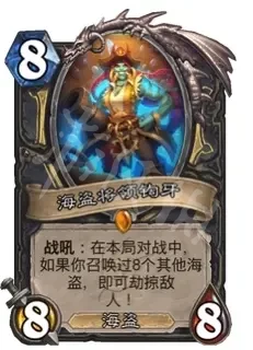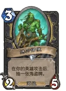 一张海贼王体系的大核心,对标海盗战的洛卡拉,但区别在于,洛卡拉出到了五费,且海盗战1234都有丝滑曲线;盗贼一次出到“8”,但目前的海军分分钟打到五六费就没牌了,具体曲线也不如海盗战的任务那么丝滑。这使得海盗贼在相当长的时期里都有可能被一直晾着,而且如果没有其他花里胡哨的东西,单次的战吼在面对牛鬼邪神一堆的狂野时,其实也稍显力不从心。