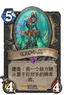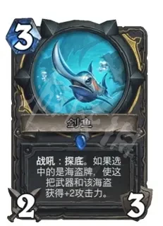又是一张超大模的卡,但为什么这么想不开要来盗贼的武器库里拼就业呢?如果是传统海军,位置已经让弑君给占了;节奏贼那块,连击刀X狐狸的配合也牢牢占住了他自身的地位;如果就上限而言,一把343+探底+海盗加攻的刀当然比得过连击刀,但上限同时也是限制,即一套海盗有限的卡组是带不了的。