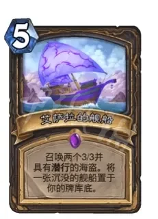 有一说一,这种卡设计师是真敢出啊?虽然从设计思路来看,前有伺机待发,后有这玩意,盗贼以后的法术池我怎么感觉一片黑暗的说。但回到目前环境里,看似美好的效果,实际上能和本家配合的法术其实少之又少。带烟幕却和亡语割裂,全舰开火却又愁自身不是海盗,配合消失可以整花活但却没有实际意义,费用变零可以躲塞布却在卡组里难有大的发挥。