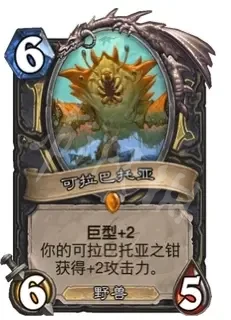 另外,依托于巨型的特殊设计,术师体系的亡语贼是能带这张卡的,通过433的快速复制,来达到保住前期的目的,还算是能用的。