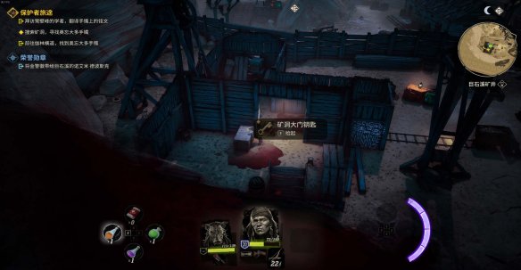 进入屋里,从桌子上能拿到矿洞大门钥匙,这把钥匙能打开一旁的大门。