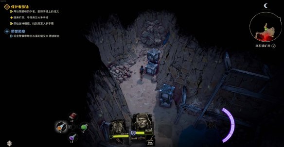 之后可以继续探索矿洞。拿手镯的尸体附近有条被堵住的通道,那里有个宝箱。