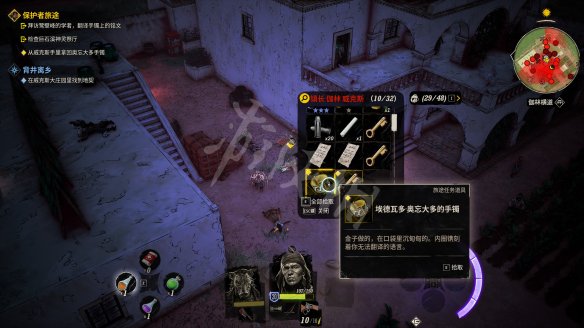再次来都伽林横道,与门口的农夫对话接下接下支线【背井离乡】。任务目标是从庄园内偷取地契,可以和主线目标一同完成。