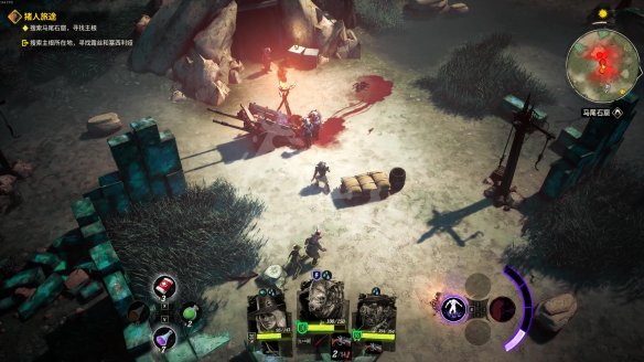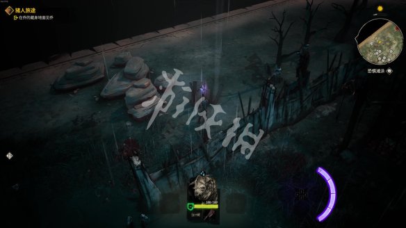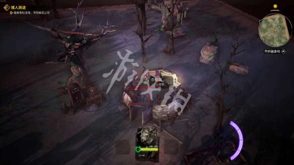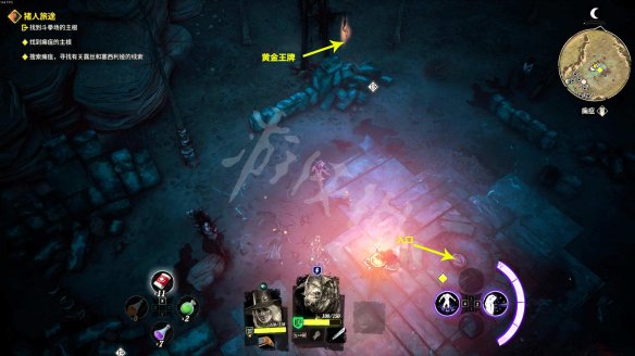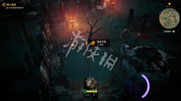 来到痈疽先将外围的敌人清理掉。之后找到祭坛,在祭坛附近的枯树上有一张【黄金王牌】。
