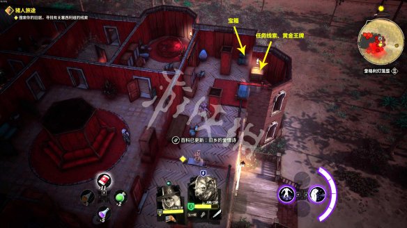 接着根据指引找到新老板隔壁的房间,也就是靠正大门的那个房间。从里面的橱柜找到任务线索【绑票字条】和【黄金王牌】。另外一旁的雕花箱子里可以找到一件高级的背心。