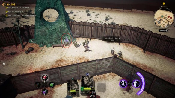 前往斗拳场寻找其余的主根。在场边的巨石块下能找到一个【尼普遗物】。