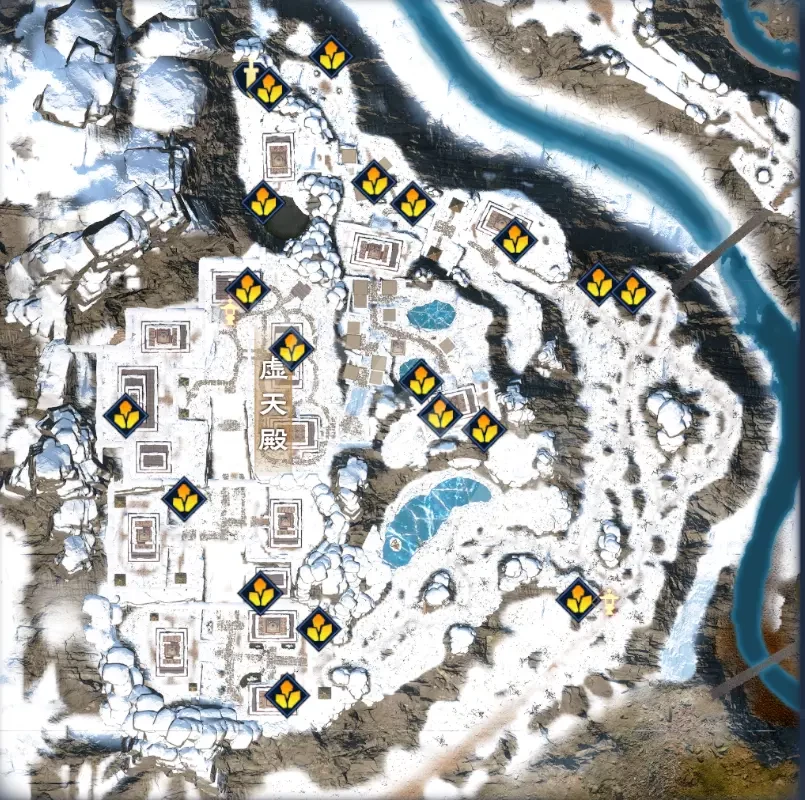 从右下石敢当往11点方向三个宝箱,然后沿外圈一直走一圈。平均下来10分钟搜完。一圈搜完。有些点可能会在房子里面或者二层。多看看