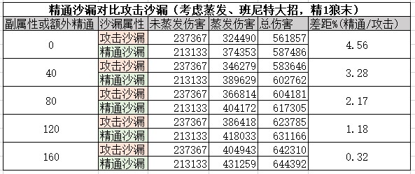 因为有魔女4件套被动的加成,元素精通的收益在120左右就比较饱和了,一般情况下都建议副属性去堆元素精通。在精通不高的情况下,副属性里元素的优先级是要高于攻击百分比的。武器带狼末或无工之剑,有足够的攻击力保证之后,是可以选择带精通沙漏的,但精通沙漏和攻击沙漏整体差距不大。其他武器的话,还是建议带攻击沙漏,输出更为稳定些。