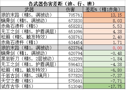 在有了高额的攻击力加成之后,高爆伤加成的赤角在伤害方面有着一定的优势,但其被动对迪卢克提升太小,所以精炼带来的提升不高,比不过同精炼的狼末。同时,不缺攻击力之后,螭骨剑这把暴击加成、以及高伤害加成的武器同样有着很高的地位。
