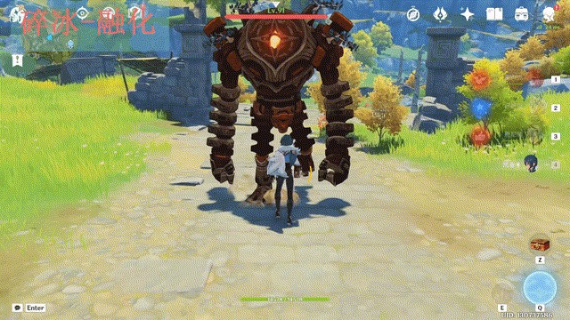 有了行秋的存在,怪物身上基本是一直挂水的。这时若有个后台的冰系角色,就能使怪物处于冻结状态,让角色的输出更为安逸。大剑角色的攻击具有碎冰效果,碎冰反应的优先级会高于其他元素反应,所以即使对于冻结状态下的敌人,迪卢克也不是百分百能打出融化反应。冻结状态下的敌人是有藏水或是藏冰的情况,所以对于冻结状态下的敌人,迪卢克是可能打出融化反应或着蒸发反应的。但如果冻结反应刚好耗完了水和冰元素,那也是有可能打不出反应的。