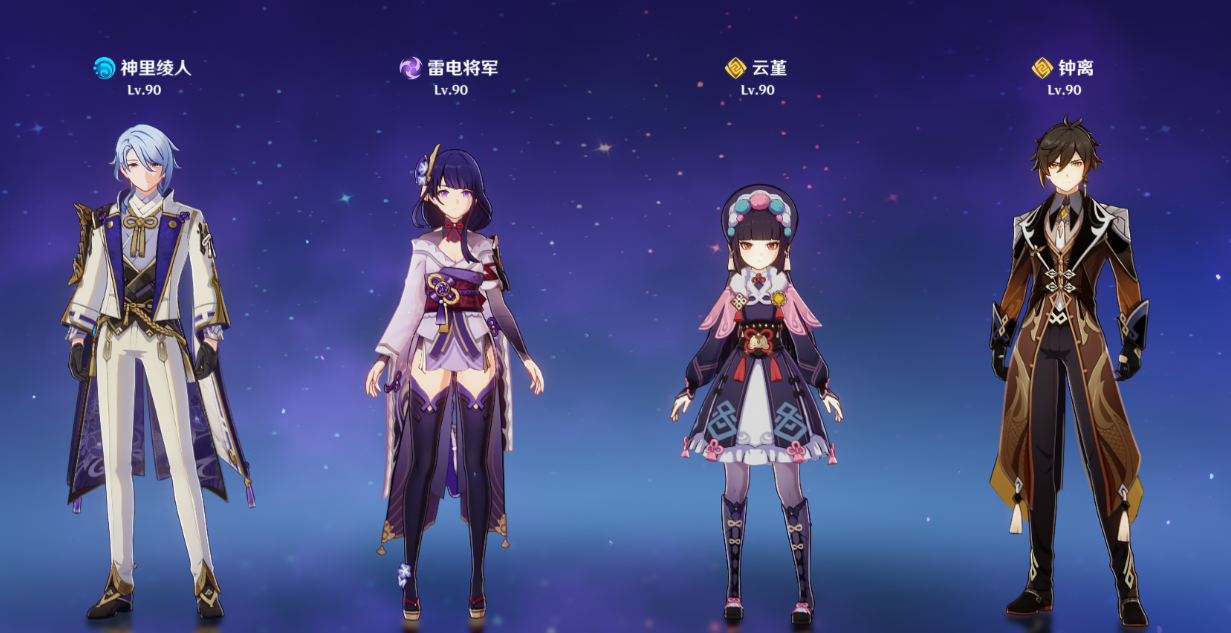 武器:雉草之稻光,天空之脊,渔获,西风长枪,喜多院十文字。