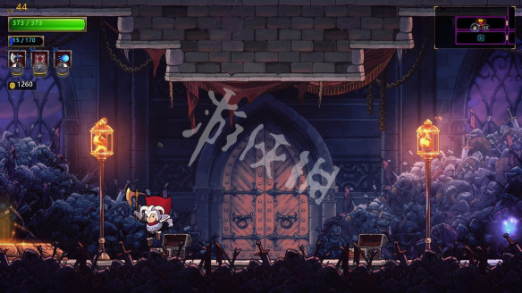 BOSS房的大门需要利用回旋击配合冲刺快速点燃两盏灯才能打开。