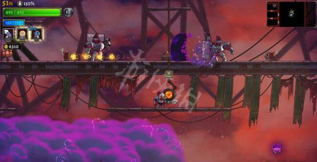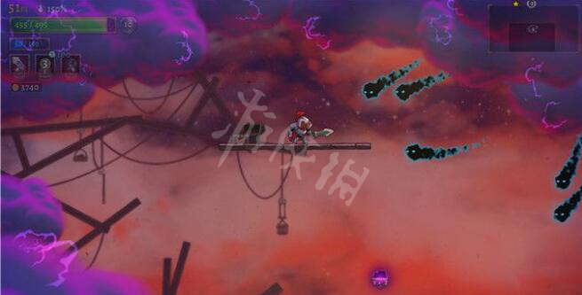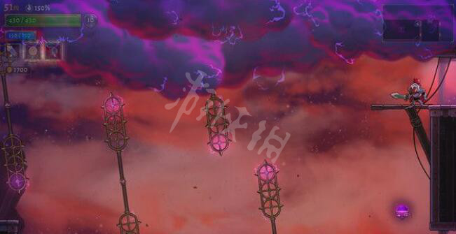 太阳塔的整体探索难度会远远大于其它的任何一张地图,特别是到达太阳塔的外侧区域,你不能触碰紫色的带电云层。