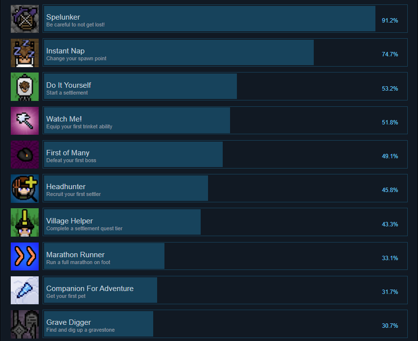 Necesse成就有什么?游戏中有许多有趣的成就可以完成,今天小编给大家带来Necesse成就奖杯一览,感兴趣的小伙伴快来看一下吧。