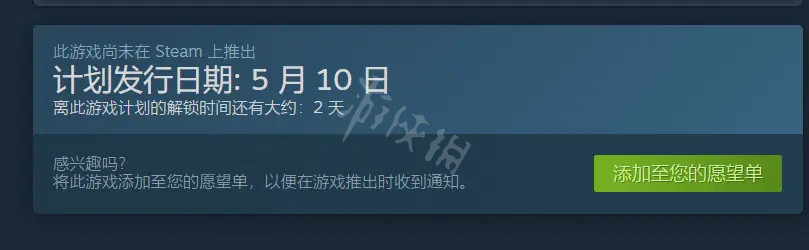 这款游戏的上线时间在5月10日,喜欢这款游戏的玩家,可以提前加入愿望单,游戏上线后第一时间会通知到玩家。