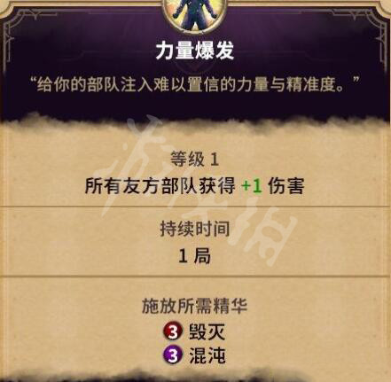注意查看魔法的精华需求,再通过搭配单位来获得相应的精华。例如需要大量秩序精华,甚至可以将盾卫拆分成两支部队,这样每支盾卫在他的回合都会提供秩序精华。